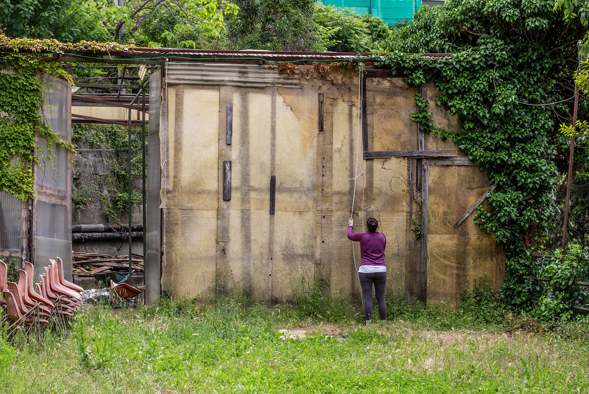 Durante la primavera 2021, mentre operai e fabbri si occupavano del Laboratorio d’Inverno, numerose Ortiche si sono prese cura del Pratone con l’obiettivo di trasformarlo in modo da ospitare sempre più persone. La rimozione di infinite zolle di ondulina e incalcolabili quantità di chiodi è durata settimane, ma ha permesso di aumentare la superficie fruibile da 150 a 300 mq dando spazio a un nuovo prato dove suonare, cantare e proiettare.